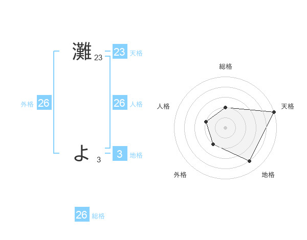 灘 よさんの天格は23画の5点!