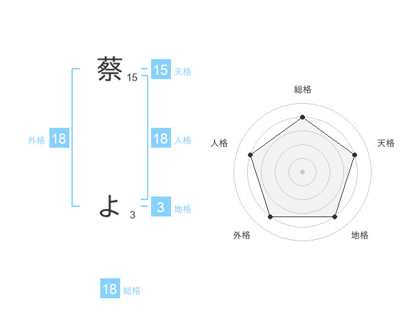 蔡 よさんの総格は18画の4点!