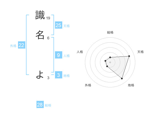 識名 よさんの総格は28画の1点!