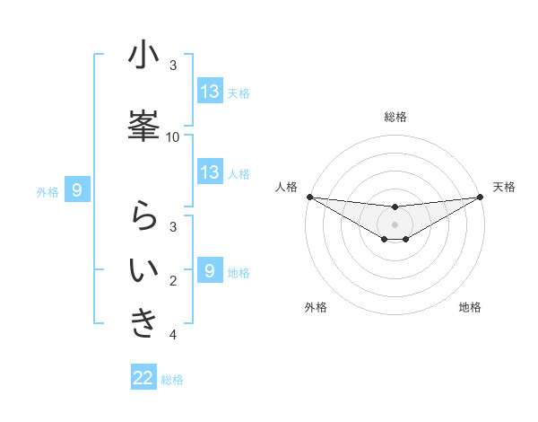 小峯 らいきさんを姓名の画数から五運を鑑定