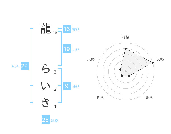 龍 らいきさんの天格は16画の5点!