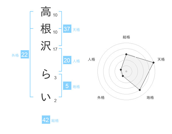 高根沢 らいさんの総格は42画の3点!