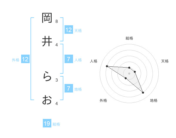 岡井 らおさんの天格は12画の1点!