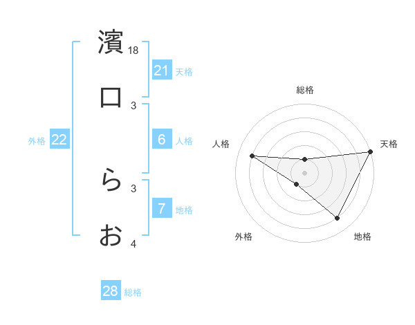 濱口 らおさんの総格は28画の1点!