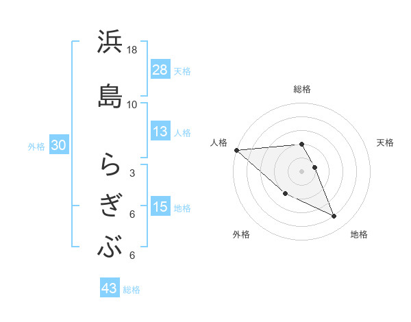 浜島 らぎぶさんを姓名の画数から五運を鑑定