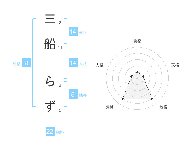 三船 らずさんの地格は8画の4点!
