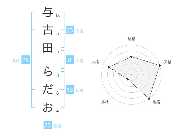与古田 らだおさんを姓名の画数から五運を鑑定