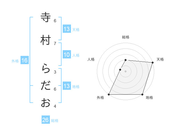寺村 らだおさんの地格は13画の5点!