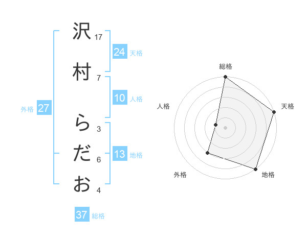 沢村 らだおさんの総格は37画の5点!