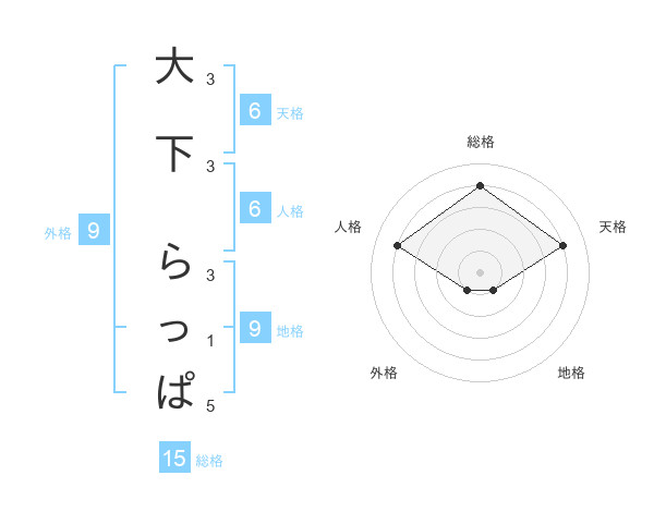 大下 らっぱさんの総格は15画の4点!