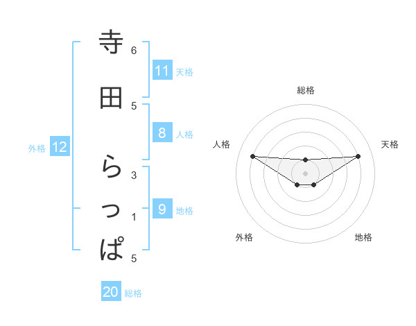 寺田 らっぱさんの総格は20画の1点!