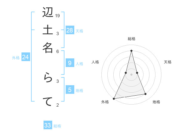 辺土名 らてさんを姓名の画数から五運を鑑定