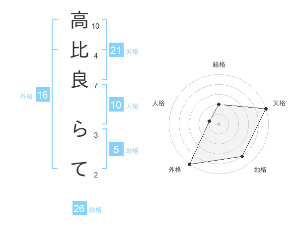 高比良 らてさんの天格は21画の5点!