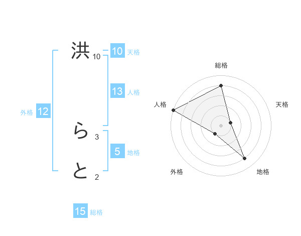 洪 らとさんの総格は15画の4点!