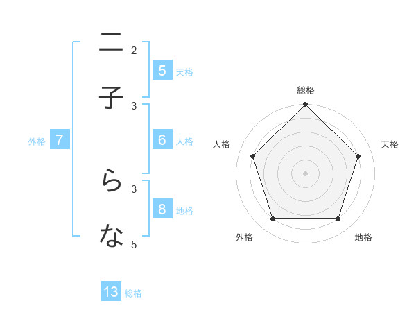 二子 らなさんの総格は13画の5点!
