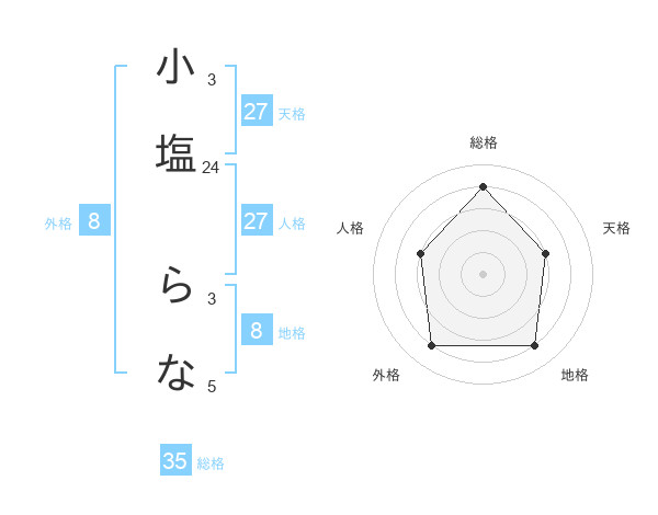 小塩 らなさんの天格は27画の3点!