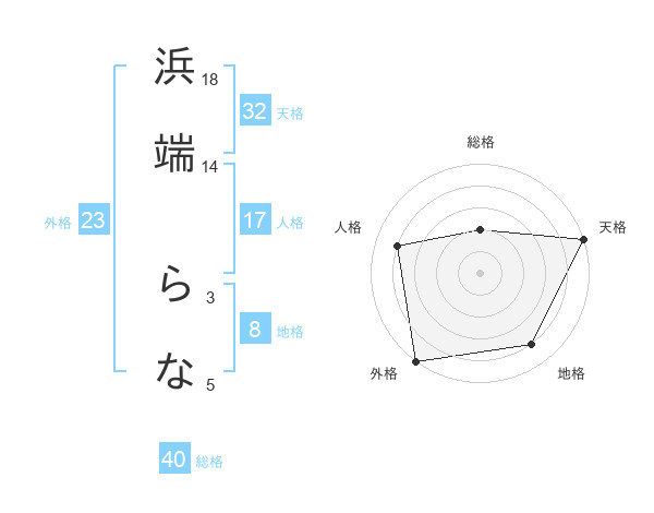 浜端 らなさんの総格は40画の2点!