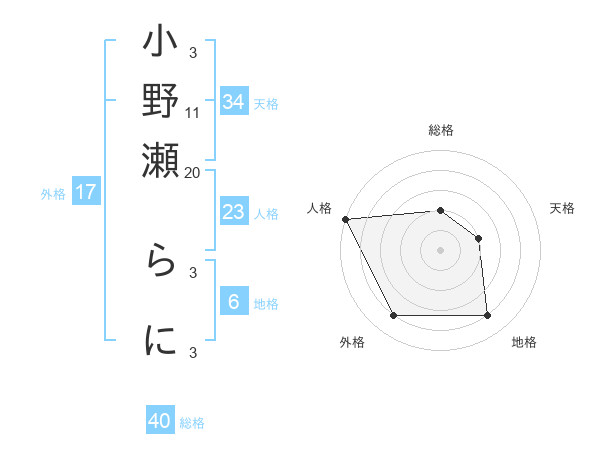 小野瀬 らにさんの外格は17画の4点!
