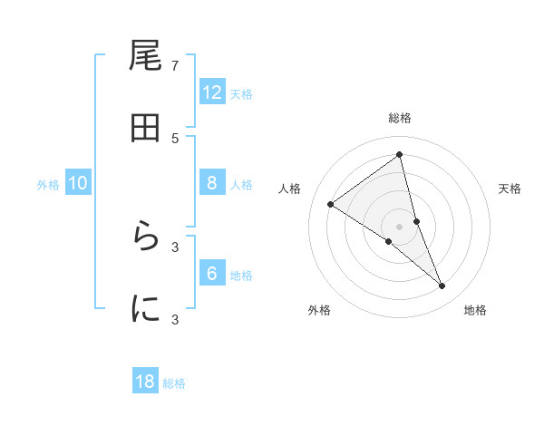 尾田 らにさんの天格は12画の1点!