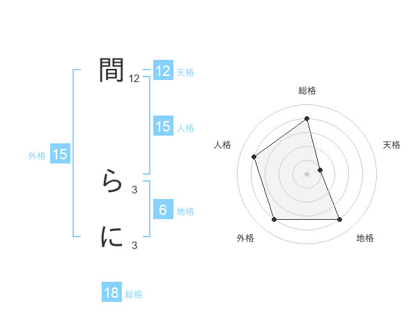 間 らにさんの総格は18画の4点!