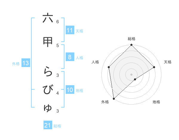 六甲 らびゅさんの外格は13画の5点!