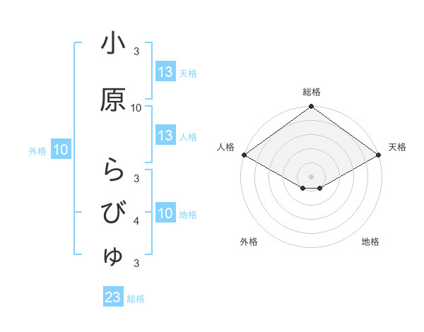 小原 らびゅさんの天格は13画の5点!