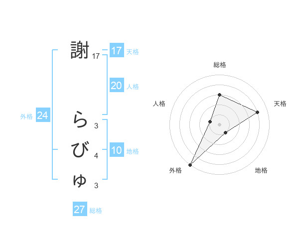謝 らびゅさんを姓名の画数から五運を鑑定