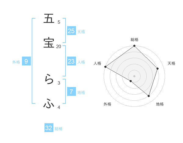 五宝 らふさんの総格は32画の5点!