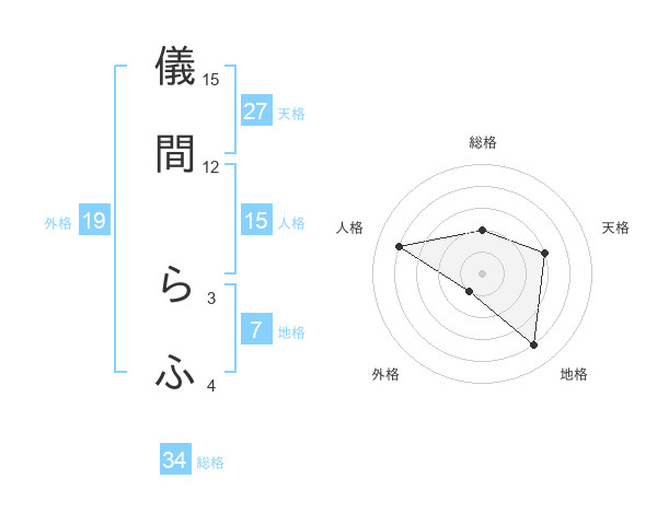 儀間 らふさんの総格は34画の2点!
