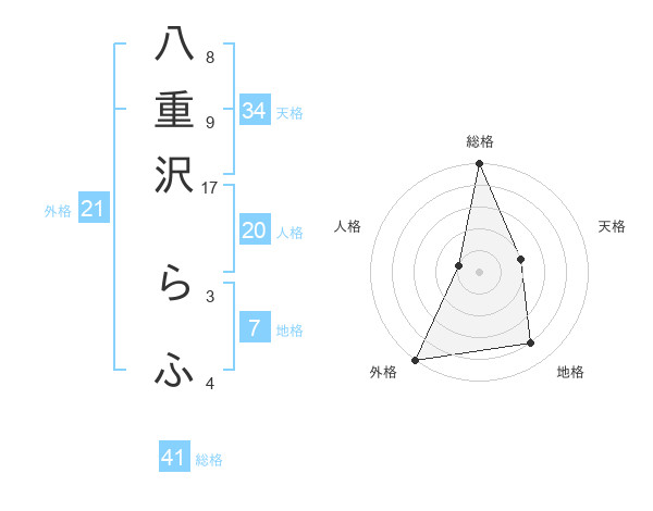 八重沢 らふさんを姓名の画数から五運を鑑定