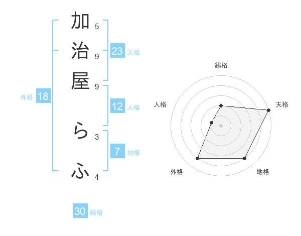 加治屋 らふさんを姓名の画数から五運を鑑定