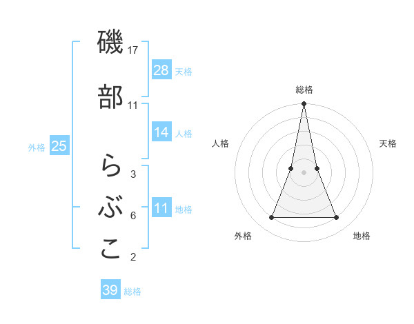 磯部 らぶこさんの総格は39画の5点!