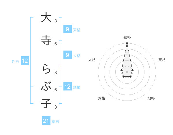 大寺 らぶ子さんを姓名の画数から五運を鑑定
