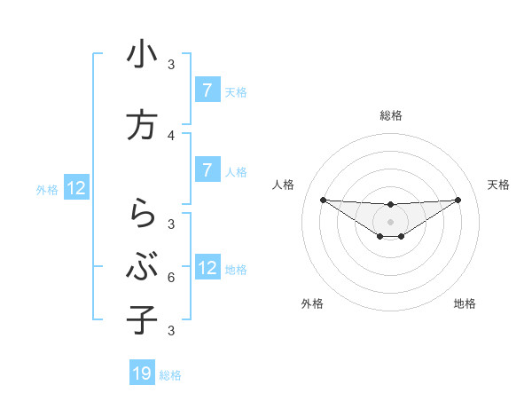 小方 らぶ子さんを姓名の画数から五運を鑑定