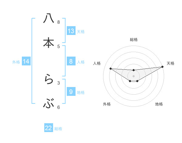 八本 らぶさんの天格は13画の5点!