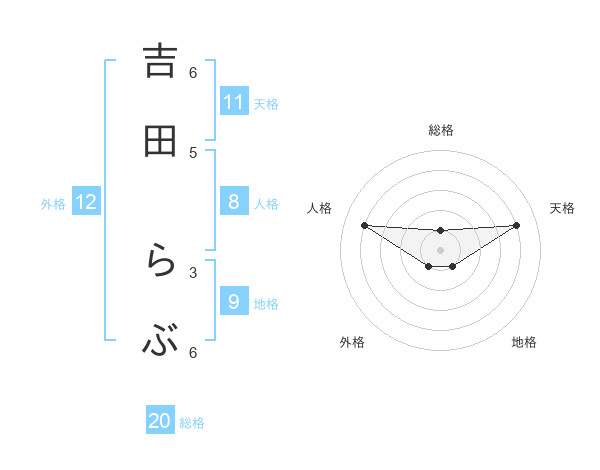 吉田 らぶさんを姓名の画数から五運を鑑定