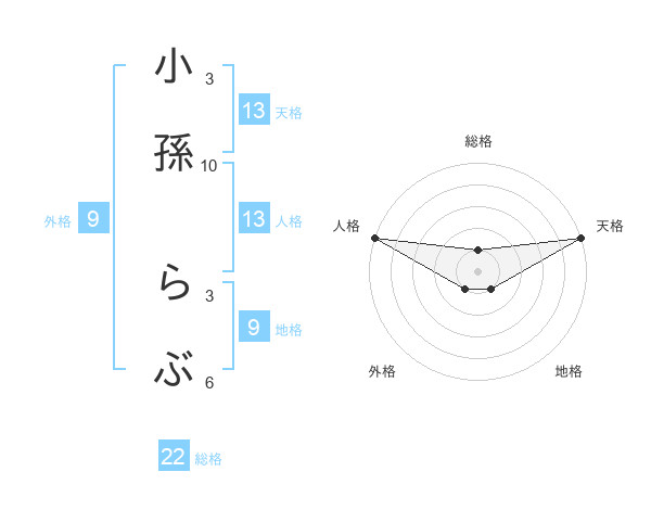 小孫 らぶさんを姓名の画数から五運を鑑定