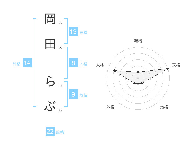 岡田 らぶさんを姓名の画数から五運を鑑定