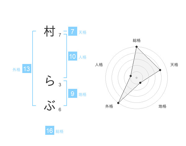 村 らぶさんの外格は13画の5点!