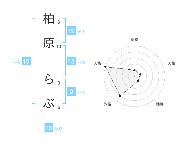 柏原 らぶさんを姓名の画数から五運を鑑定