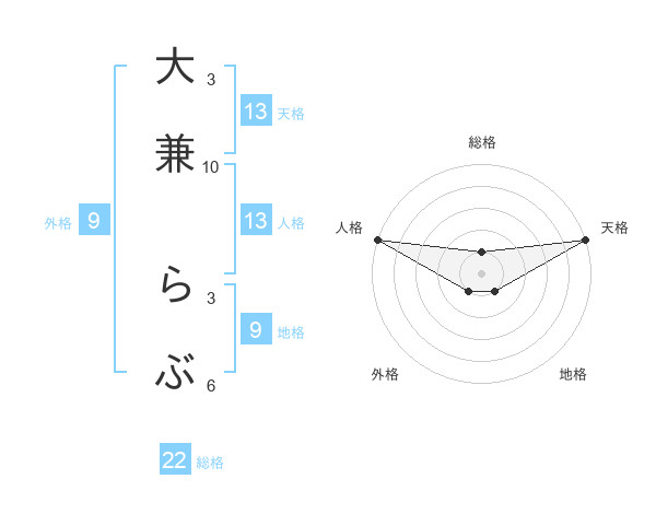 大兼 らぶさんの天格は13画の5点!