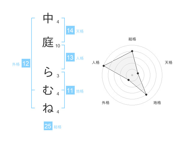 中庭 らむねさんの総格は25画の4点!