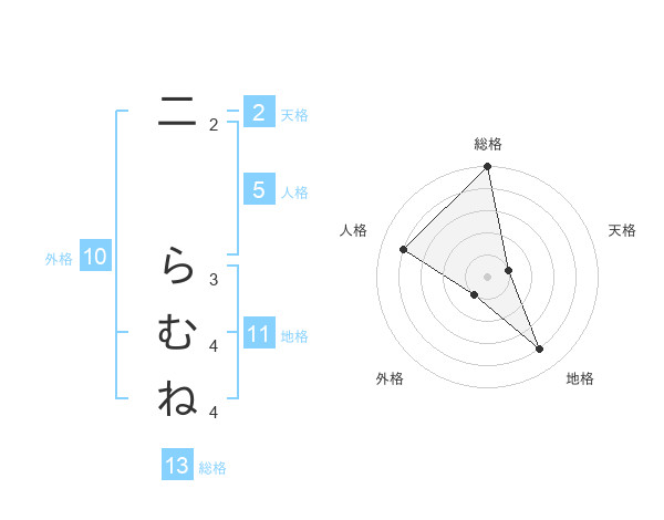 二 らむねさんの総格は13画の5点!