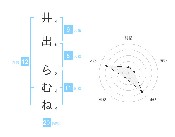 井出 らむねさんの総格は20画の1点!