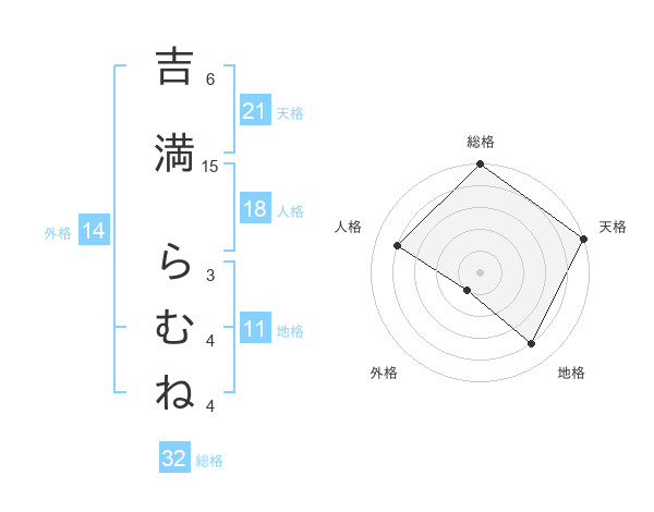 吉満 らむねさんの天格は21画の5点!