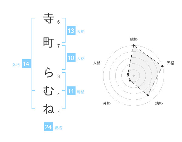 寺町 らむねさんの天格は13画の5点!