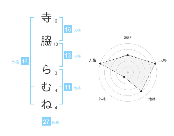 寺脇 らむねさんを姓名の画数から五運を鑑定