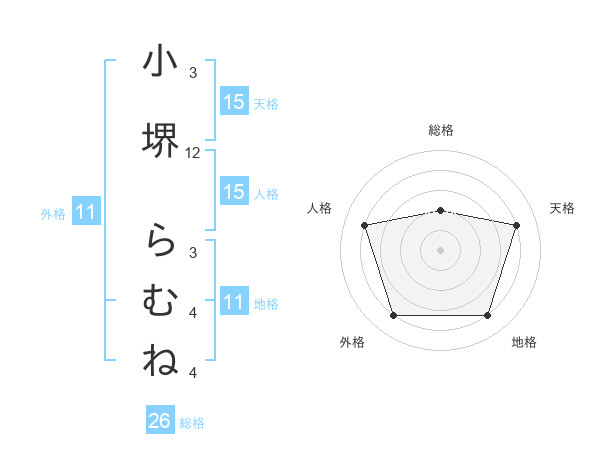 小堺 らむねさんを姓名の画数から五運を鑑定