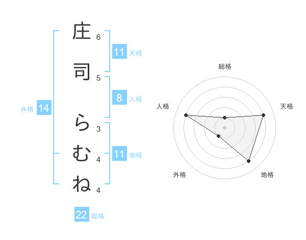 庄司 らむねさんを姓名の画数から五運を鑑定