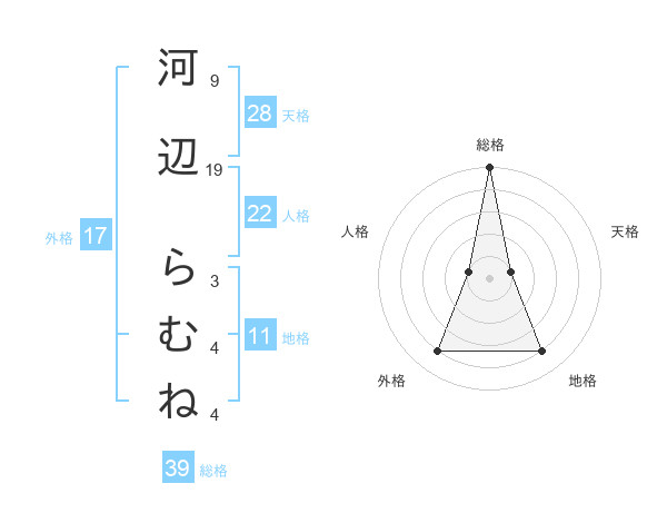 河辺 らむねさんを姓名の画数から五運を鑑定